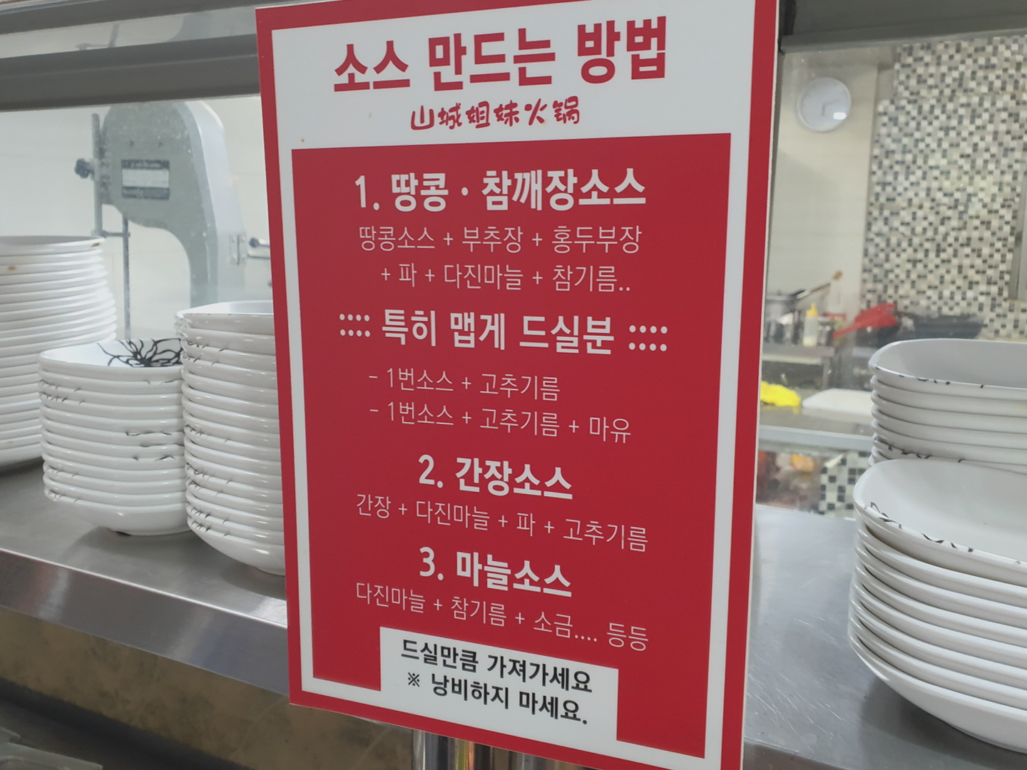 그리고 취향에 따라 찍어먹을 소스를 직접 만들어야 되요. 중국 전통이라 그런지 처음보는 조미료나 소스가 너무 많아서 뭘 어떻게 만들어야할지 모르겠더라구요.