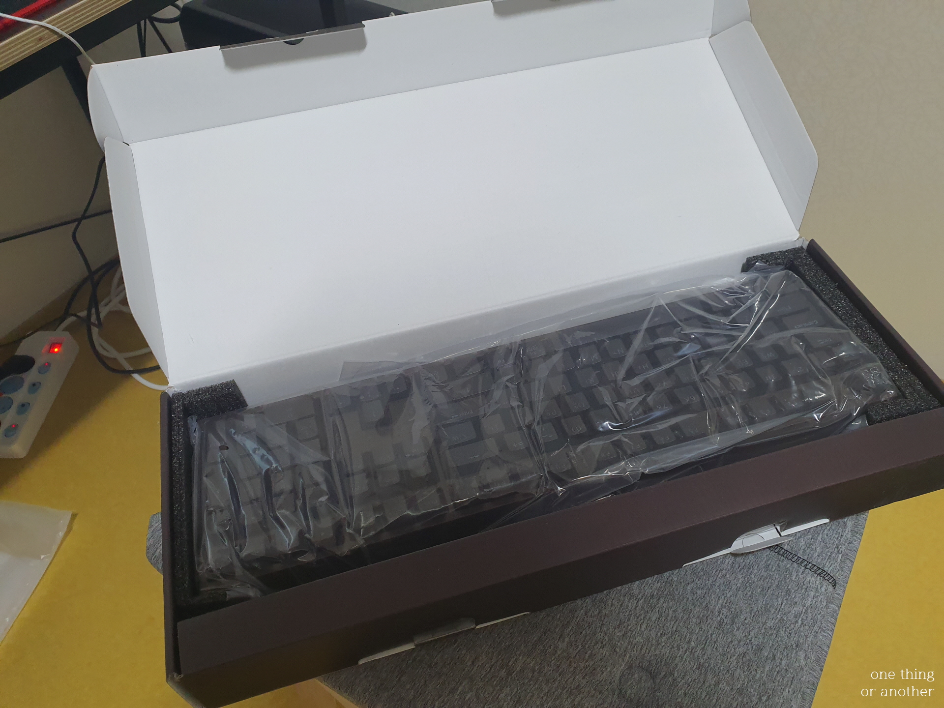 박스 안에는 키보드가 들어있는데 기계식 키보드답게 꽤 묵직합니다. 그 동안 집에서는 멤브레인 방식의 키보드를 오래 사용했었는데, 이사온 집에 작업실을 만들기도 해서 조금 클릭음이 크더라도 PC방 감성을 느끼고 싶어서 교체하게 되었어요.