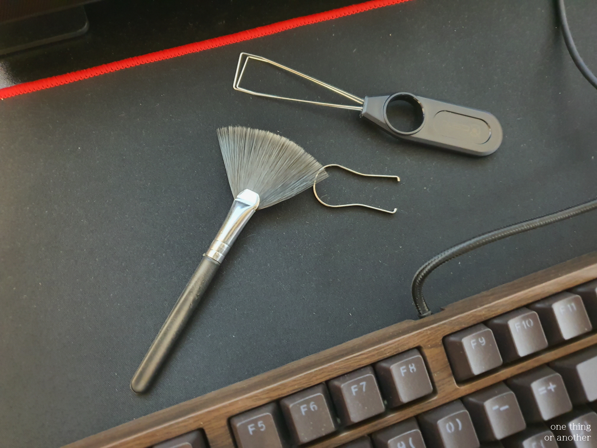 구성품으로 키보드에 먼지가 쌓이면 청소할 수 있는 전용 브러쉬와 키캡을 제거할 수 있는 스위치 리무버, 키캡 리무버가 함께 들어있습니다.