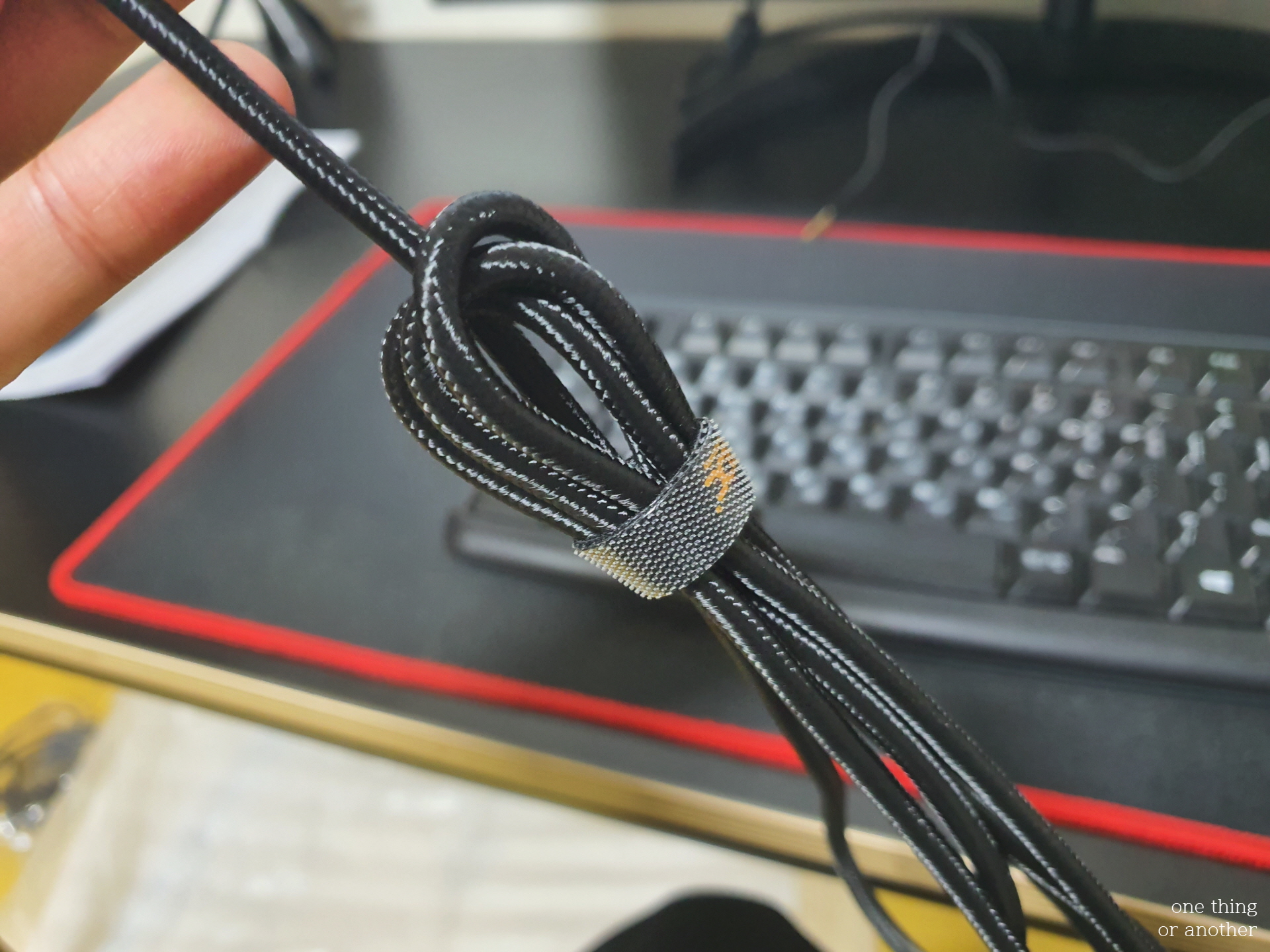 키보드를 연결하는 USB 케이블도 잘 고장날 것 같지 않게 튼튼해 보였고, 선을 정리할 수 있는 벨크로도 붙어있어서 여유분의 길이를 깔끔하게 정리할 수 있을 것 같았습니다.