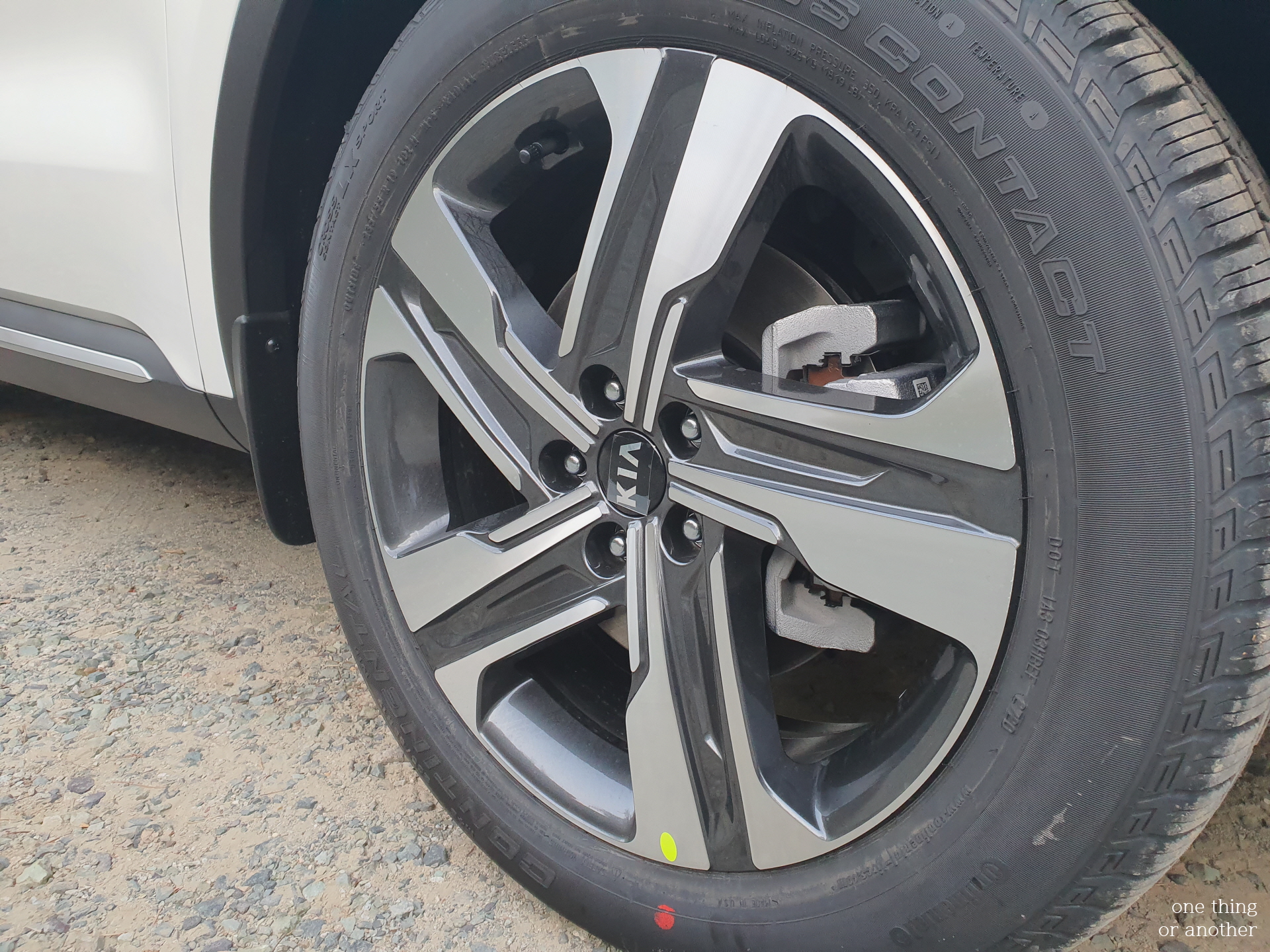 아쉬운 점은 하이브리드 모델은 휠 사이즈가 17인치와 19인치 밖에 없다는 점이었습니다. 선택지가 두개밖에 없어서 19인치를 고르긴 했는데, 하이브리드 모델도 디젤이나 가솔린 모델처럼 20인치 휠을 옵션에 넣어줬으면 어땠을까 하는 아쉬움이 있네요. 개인적으로 큰 쏘렌토 차체에 19인치 휠은 조금 작은 신발을 신는 느낌인 것 같아요. 연비를 위한 어쩔 수 없는 선택이었을까요. 하이브리드 전용 휠 디자인도 기아차스럽긴 하지만 개인적으로는 내연기관 모델의 20인치 휠이 더 예뻐보였습니다.
