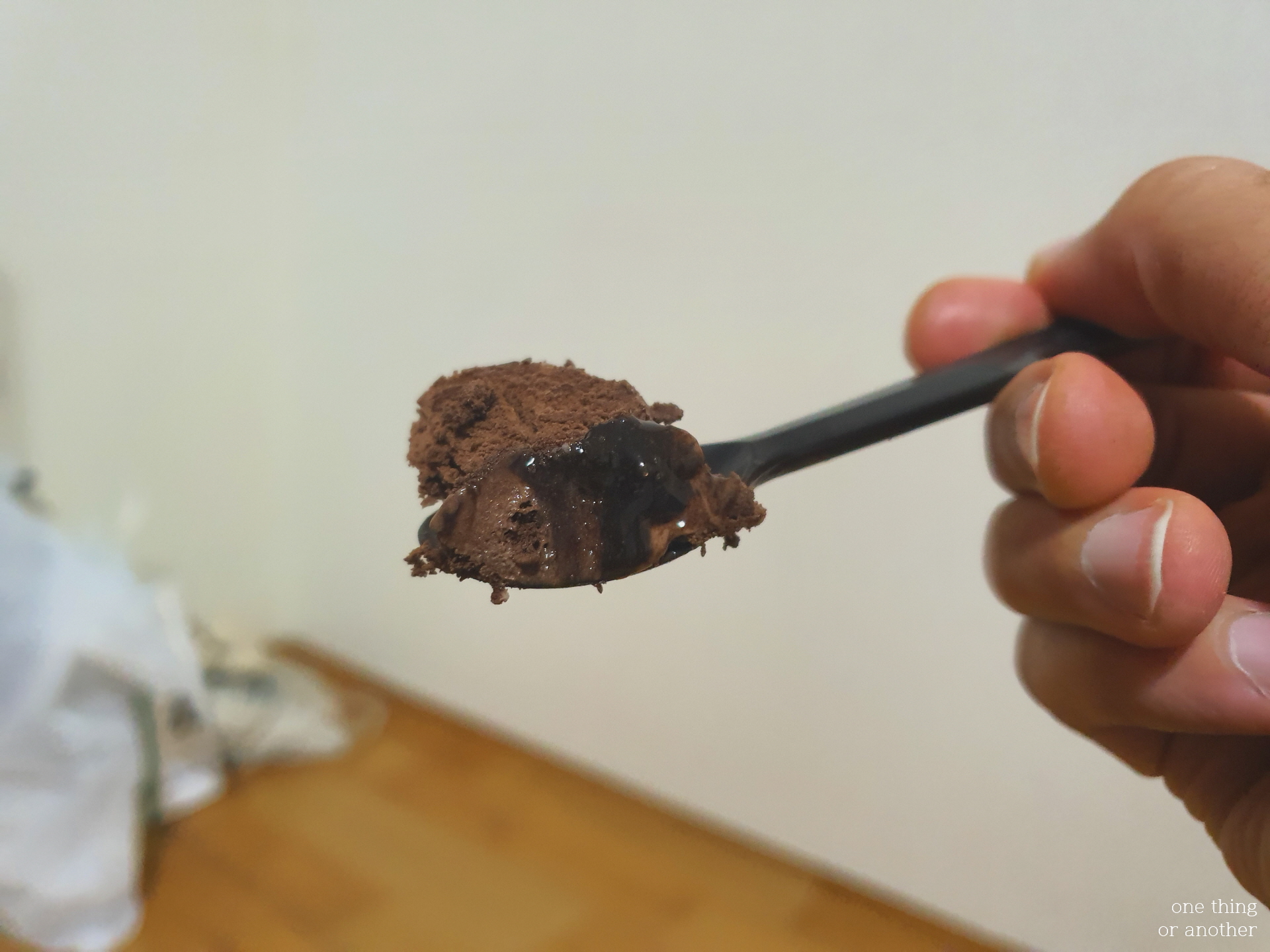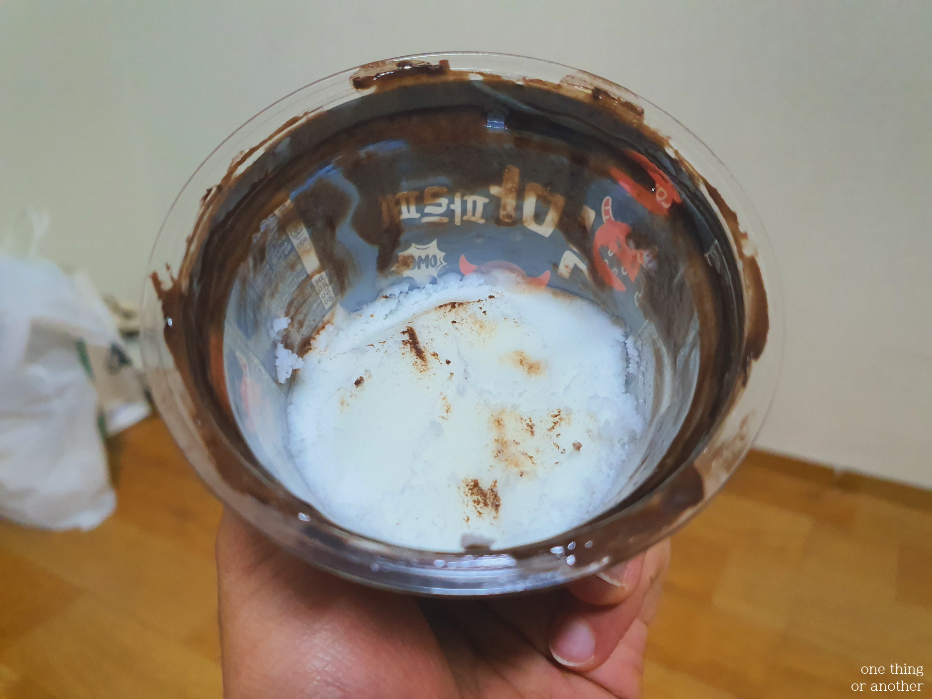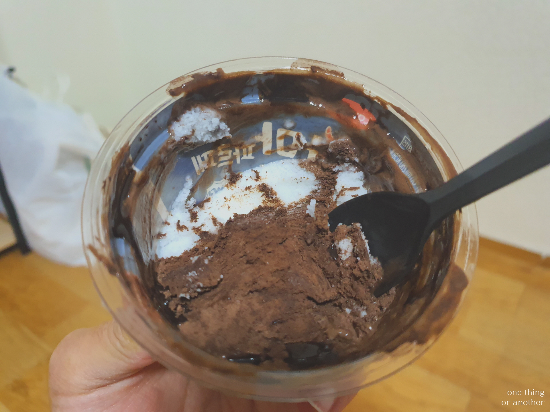 편의점 사장님께서 챙겨주신 스푼으로 한입 떠먹어봅니다.