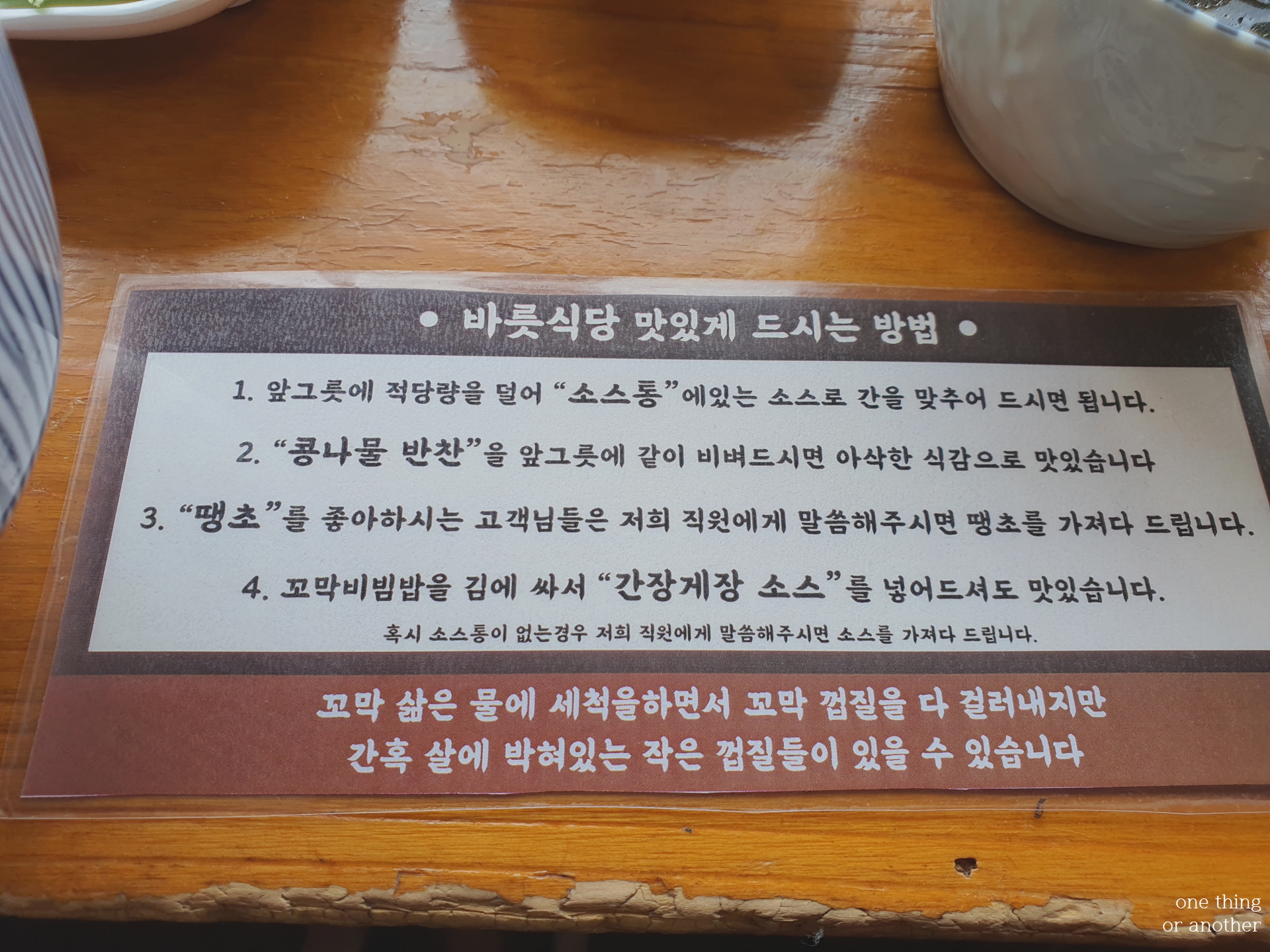 음식을 먹기 전에 '바릇식당 맛있게 먹는 방법'을 한번 읽어주고,