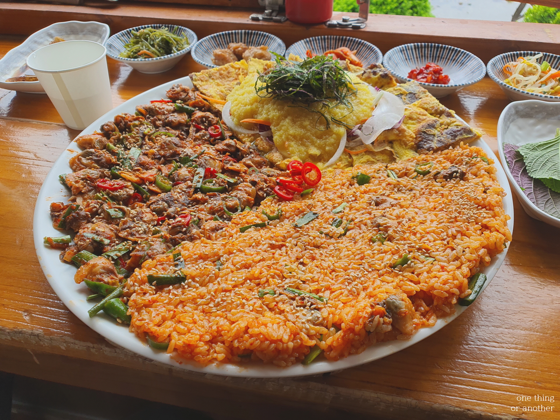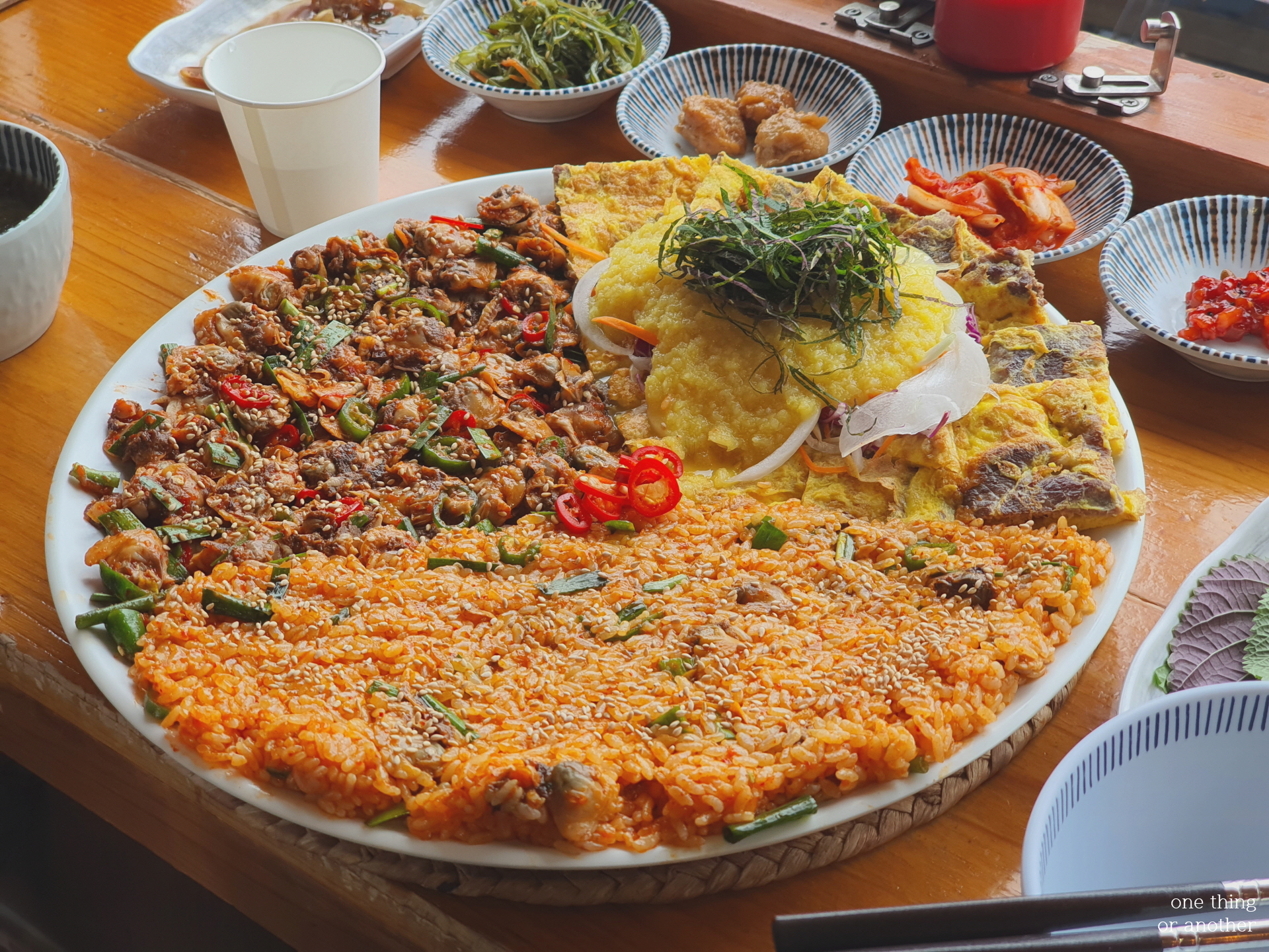 꼬막비빔밥과 꼬막무침, 육전이 함께 나오는 메뉴였어요.