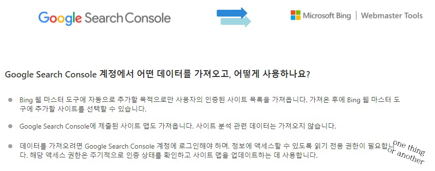 빙 웹마스터도구에 구글 서치콘솔 연동으로