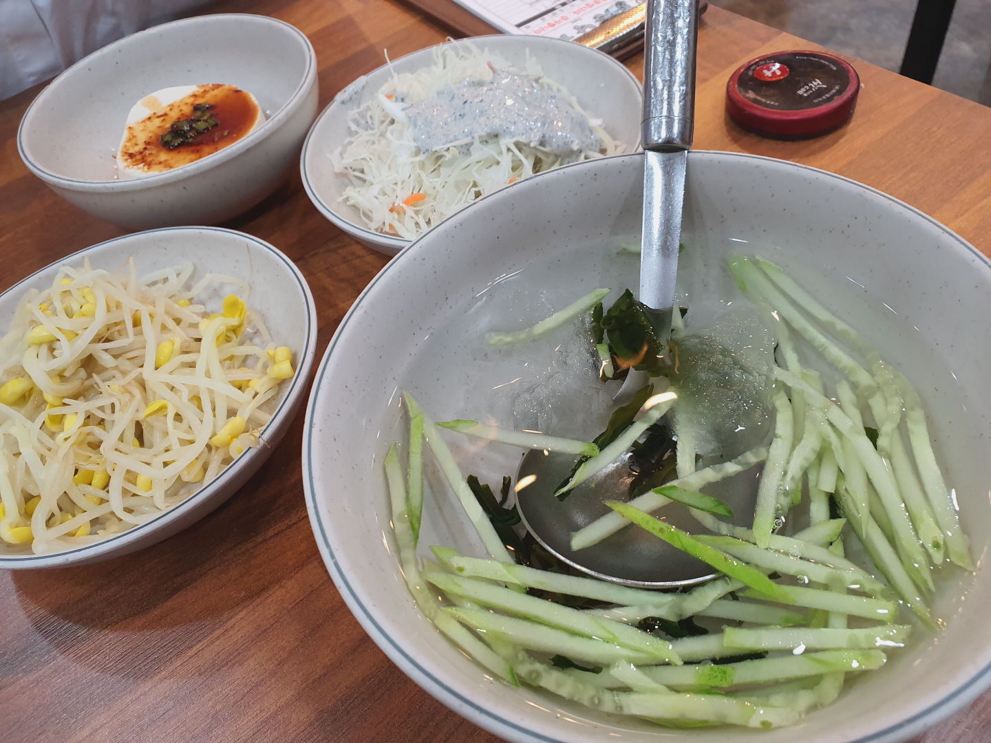 왜인지 모르게 매콤한 낙지덮밥과 엄청 잘 어울리는 시원한 냉국과 함께 밥 한그릇을 금방 해치웠습니다.
