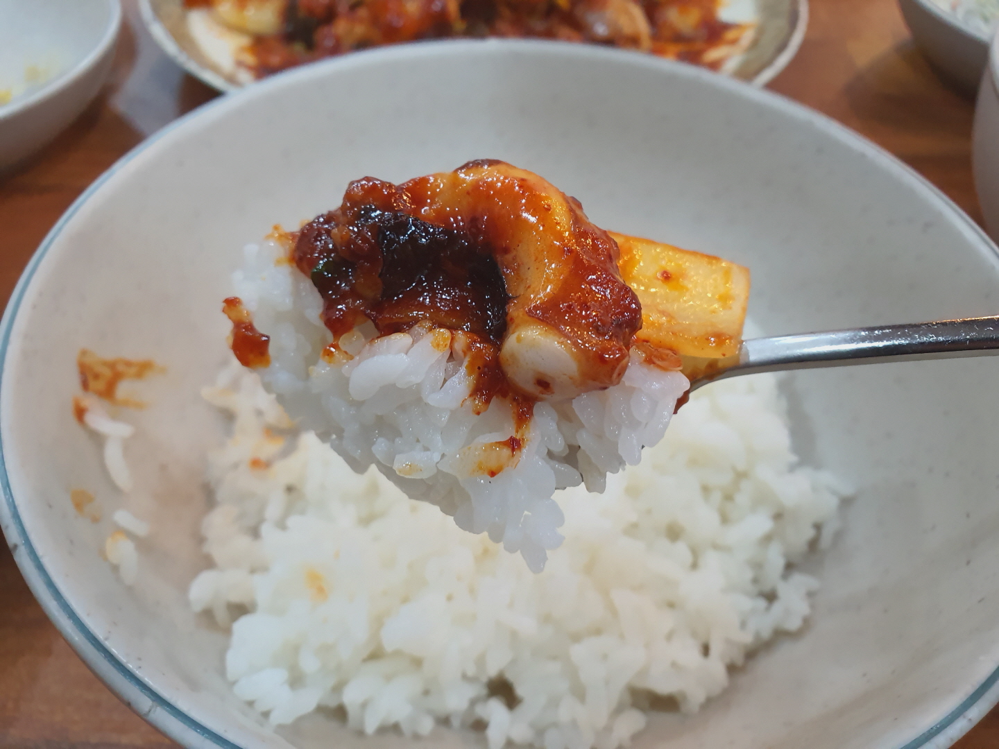 매콤한 양념에 낙지도 통통하니 쫀득하게 맛있더라구요.